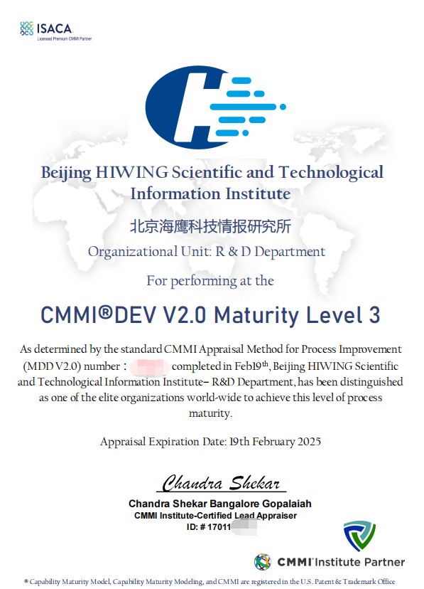 歷時(shí)多月,北京海鷹科技情報(bào)研究所(以下簡(jiǎn)稱“海鷹科技”)順利通過了CMMI3級(jí)認(rèn)證,本次評(píng)估由展圖信息和海鷹科技工作精英共同成立的工作小組,按照CMMI最新模型標(biāo)準(zhǔn)對(duì)海鷹科技研發(fā)質(zhì)量管理過程進(jìn)行了全面考察和評(píng)估。這是對(duì)海鷹科技在軟件研發(fā)的過程組織能力、技術(shù)研發(fā)能力、項(xiàng)目管理能力、解決方案交付能力、質(zhì)量管理能力等方面的全面認(rèn)可,也意味著海鷹科技可為用戶提供更成熟的行業(yè)解決方案、更高質(zhì)量的服務(wù)以及持續(xù)創(chuàng)新和升級(jí)的服務(wù)。