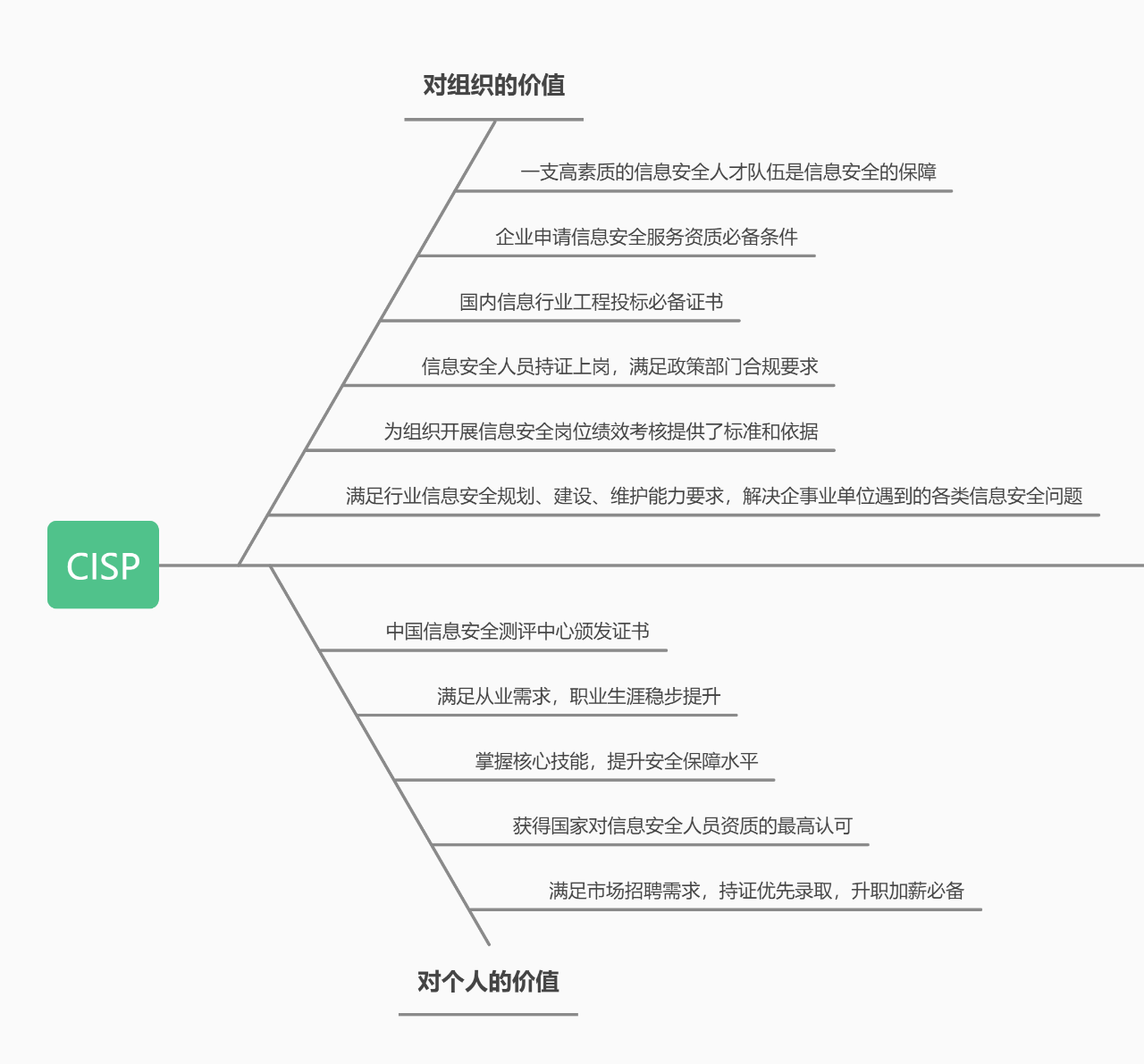 CISP根據(jù)實際崗位工作需要,CISP分為兩類,分別是“注冊信息安全工程師”,英文為Certified Information Security Engineer(簡稱CISE); “注冊信息安全管理人員”, 英文為Certified Information Security ?Officer(簡稱CISO)。其中CISE主要從事信息安全技術開發(fā)服務工程建設等工作,CISO從事信息安全管理等相關工作。這兩類注冊信息安全專業(yè)人員是有關信息安全企業(yè),信息安全咨詢服務機構、信息安全測評機構、社會各組織、團體、企事業(yè)有關信息系統(tǒng)(網(wǎng)絡)建設、運行和應用管理的技術部門(含標準化部門)必備的專業(yè)崗位人員,其基本職能是對信息系統(tǒng)的安全提供技術保障,其所具備的專業(yè)資質(zhì)和能力,系經(jīng)中國信息安全測評中心實施注冊。